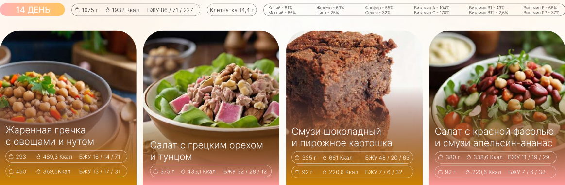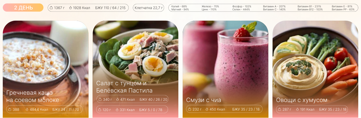 количество калорий и распределение макронутриентов могут варьироваться в зависимости от этапов
